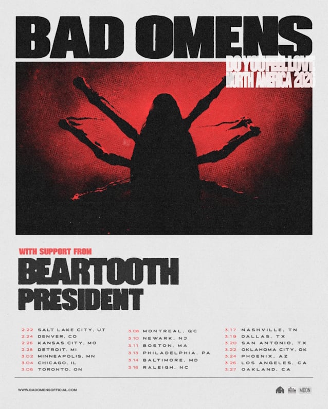 Platinum-certified rock band BAD OMENS are set to take North America by storm with their headline arena tour in spring 2026. The run kicks off February 22 in Salt Lake City, Utah at Delta Center with support from BEARTOOTH and PRESIDENT, bringing the band’s cinematic, high-energy performances directly to fans across the U.S. and Canada.
