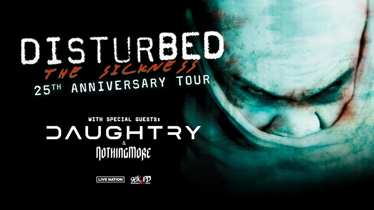 Emerging out of Chicago with an insidious, infectious, and inimitable vision without comparison, Disturbed have quietly dominated hard rock on their own terms. It’s why they’ve claimed a place at the forefront of 21st century rock with ales of over 17 million units, nearly 14 billion streams, and sold out shows around the globe. The band have six RIAA album certifications, and singles from all eight albums have reached the top ten of the Mainstream Rock charts. The band have recently launched their new era with “I Will Not Break,” the band’s first release on their own label, Mother Culture Records. The two-time GRAMMY® Award-nominated quartet have notched five consecutive #1 debuts on the Billboard Top 200 for Believe, Ten Thousand Fists, Indestructible, and Asylum—the only hard rock group other than Metallica to accomplish this feat. Since their 5x-platinum debut The Sickness in 2000, they have built a bulletproof catalog highlighted by a procession of smashes, including the 2x-platinum “Stupify,” “Inside The Fire,” and “Land of Confusion,” 2x-platinum “Stricken,” 8x-platinum “Down With The Sickness,” and 7x-platinum “The Sound of Silence,” to name a few. The latter notably received a GRAMMY® Award nomination in the category of “Best Rock Performance” as the band earned “Best Rock Artist” at the 2017 iHeartRadioMusic Awards. Still, Disturbed never stop, and their most recent 2022 album Divisive featured their 17th #1 at Rock Radio “Hey You,” “Unstoppable,” and more.