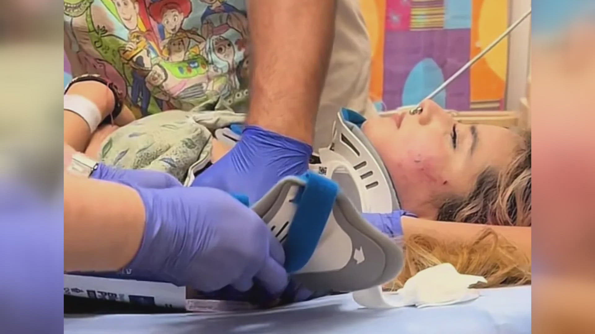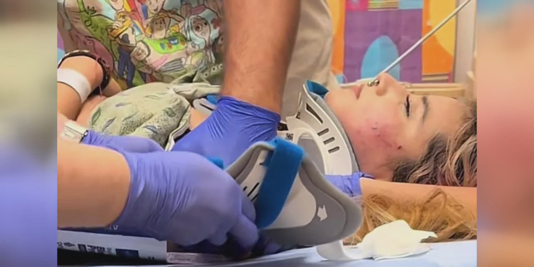 She was taken to the hospital with cuts to her face and a neck injury that required a brace.