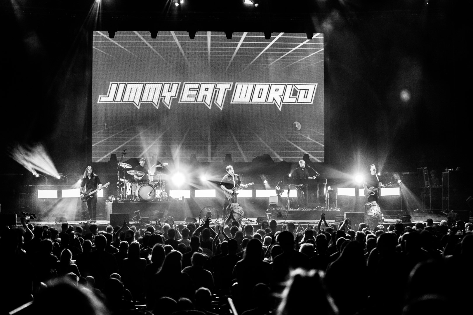 With New Found Glory laying the groundwork of how the night was expecting to be, Jimmy Eat World picked up where NFG left off; but with a twist as for them this was a hometown show, and the hometown came out. The crowd cheered in unison with pride, excitement and in awe when Jimmy Eat World took the stage. They hit the crowd with the fan favorite song “Pain”, leading the crowd to cheer and sing along; “IT TAKES MY PAIN AWAY!!!” could be heard from all directions in the amphitheater. Jimmy Eat World performed songs such as “Just Tonight….”, “Let It Happen”, “Futures”, “Bleed American”, “Something Loud” and “The Middle”. Kids and adults could be seen singing along and cheering for Jimmy Eat World throughout their set.