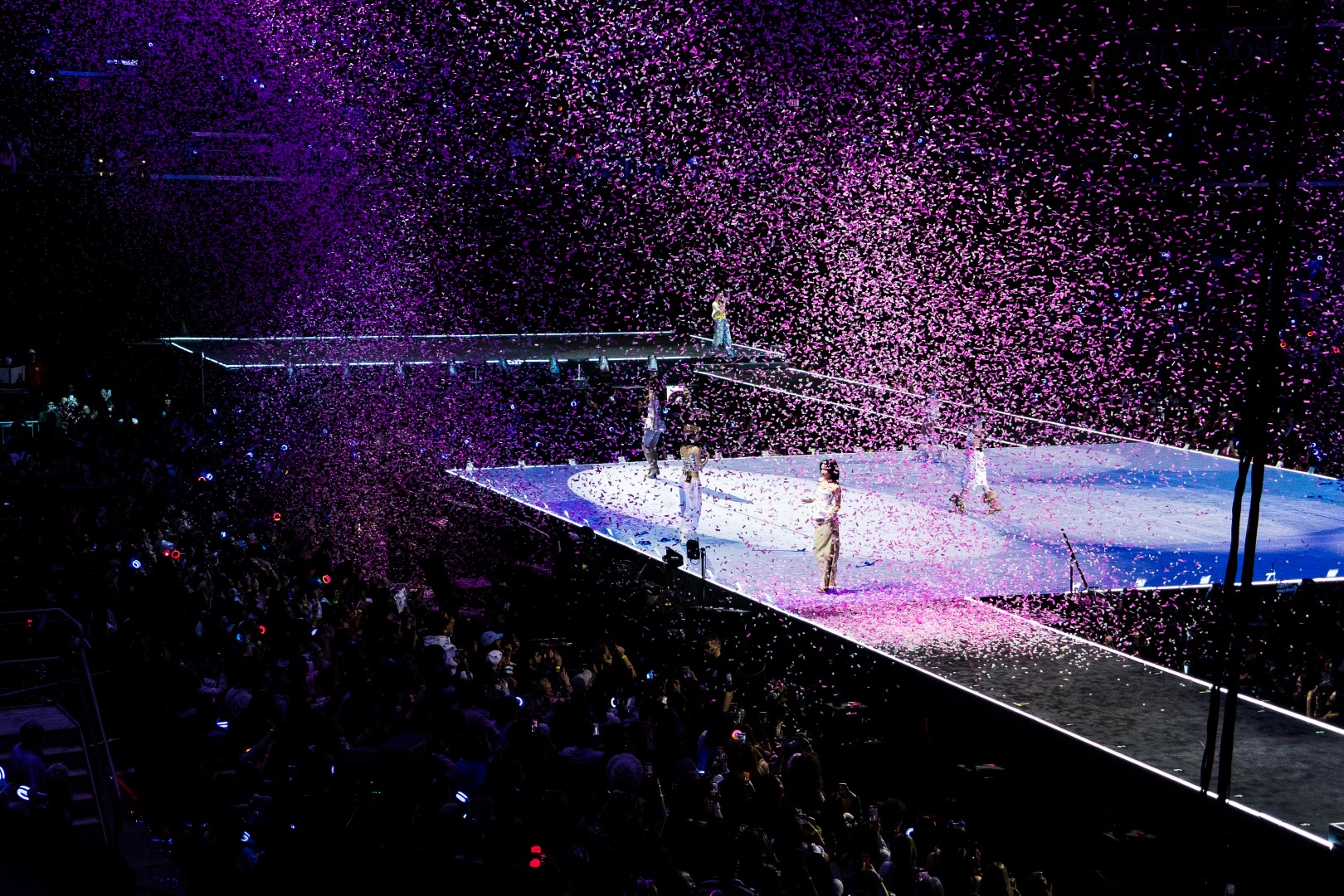 With a sold-out venue filled with fans of all generations, TWICE presented a cinematic adventure, equipped with floating stages, cat walks, video walls, confetti, background dancers, synchronized dancing and multiple outfit changes. The evening was a curated showcase that focused on TWICE as a group but also as individual artists. TWICE performed popular hit songs and fan favorites throughout their decade’s long careers as well as individual performances (solo’s) from Tzuyu, Mina, Nayeon, Dahyun, Chaeyoung, Jihyo, Sana, Momo. There was even a special performance of the song “Takedown” by Jihyo, Chaeyoung and Jeongyeon (recorded audio), a song made popular by Netflix’s animated film KPop Demon Hunters.