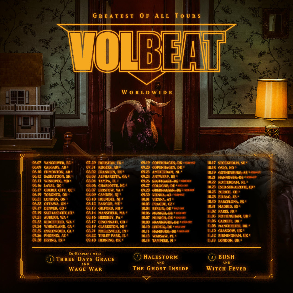 Volbeat will return to the road on the “Greatest Of All Tours Worldwide,” running throughout 2025. The tour kicks off tomorrow, June 7, in Vancouver, BC, with the first show of a co-headline Canadian run with Three Days Grace and special guests Wage War. The tour then continues with headline treks in the U.S., with special guests Halestorm and The Ghost Inside, and Europe and the UK with special guests Bush and Witch Fever. All dates are below.